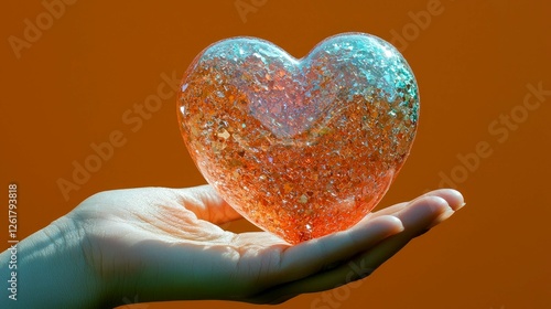 A Hand Holding a Sparkling Heart: Symbol of Love, Romance, and Affection
