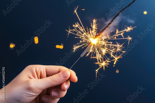 fireworks, sparkler, hand, dark, blue, background, night, celebration, party, festival, light, bright, shiny, gold, bokeh, sparkle, glittering, festive, holiday, new year, christmas, event, pyrotechnic, fun, magic, joy, happiness, glowing, burning, vibrant, warm, spark