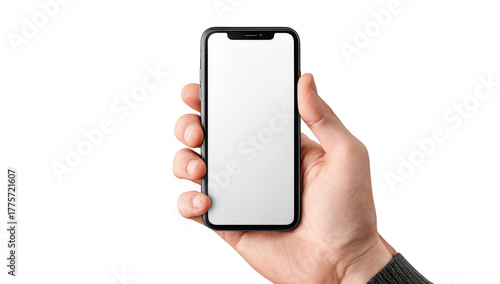 hand, smartphone, phone, mobile, screen, blank, white, grey, dark, black, display, touch, device, technology, modern, digital, portable, communication, cyberspace, connection, image, realistic, portrait, held, user, view, contraption, interface, touch screen, app, content, empty, flat, isolated, hand-held