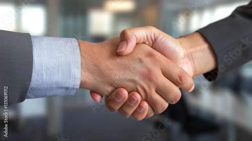 A handshake captured in a blurred office background, emphasizing trust and professionalism