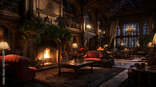 a hauntingly beautiful scene set in the vast, opulent lounge of a century-old Art Nouveau-style hotel - Generated by AI