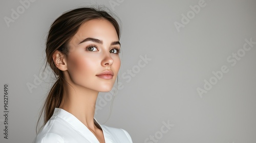 woman, beauty, health care, business, face, calm, businesswoman, people, smiling, smile, hair, person, model, fashion, brunette, eye, closeup, serious, 1, looking, teenage