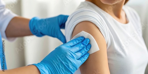 A healthcare professional administers a vaccine to a patient's arm, emphasizing medical care and vaccination procedures.