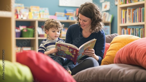heartwarming, image, teacher, assisting, young, student, reading, corner, holding, picture, book, point, word, encouraging, children, read, aloud, cosy, inviting, soft, cushion, shelf, filled, book, colourful, decoration, expression, mix, concentration, curiosity, patient, supportive, atmosphere, nurturing, warm, intimate, capturing, importance, literacy, role, teacher, love, children
