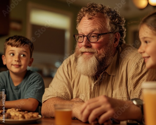 A heartwarming scene of an extended family enjoying a cozy evening together in their living room, filled with laughter and love This image captures the essence of family unity and togetherness, as