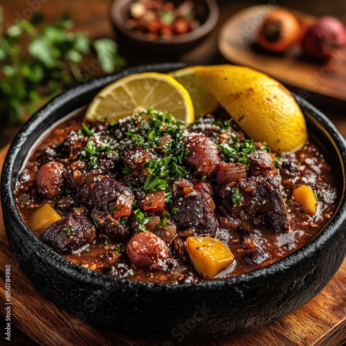 stew, meat, vegetable, lemon, herb, spice, bowl, garnish, food, cookery, cooking, savoury, hearty, delicious, meal, dining, receipe, ingredient, favor, tradition, comfort, dish, presentation, rustic, warmth, appetising, homemade, rich, protein, broth, texture, colours, aroma, serving, culinary, feast, nourishment, enjoyment, gathering, culture, sharing, family, pot, kitchen, life events, satisfaction, palate