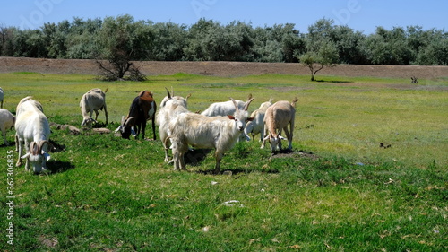village, grazing, goat, goat, farm animal, summer, agriculture, grass, mammal, pasture, meadow, herd, countryside, field, animal, sheep, farm, cow, landscape, green, nature, cattle, farming, rural, farmland, white, cow, sky