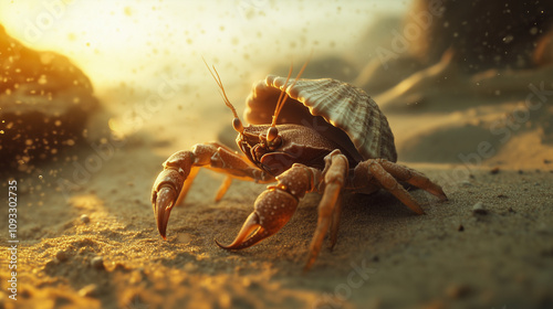 hermit crab, underwater, shell, sand, marine animal, crustacean, marine life, aquatic, ocean, closeup, pincer, tropical, ocean floor, nature, wildlife, natural world, underwater photography, habitat, crab, animal, beach, sea