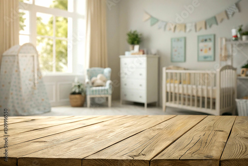 wooden table, tabletop, childcare center, crib, baby, children, children, infant, furniture, interior design, e-business, background, empty, light brown, pastel, cheerful, serene, calm, wood grain, closeup, home decor, baby shower, soft focus, minimal, spring, summer, family, parenting, background