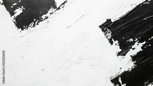 A high-contrast abstract background with bold black brushstrokes on a white canvas, creating an artistic, minimalist look with texture