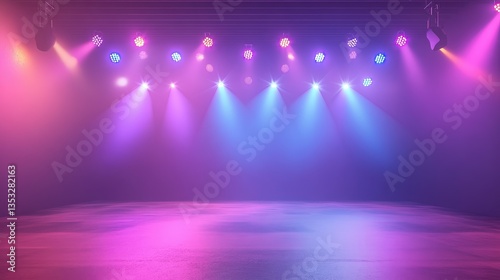 A high-energy EDM concert stage with pulsating neon strobes and moving lasers.