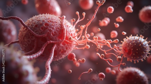 A highly detailed 3D medical animation illustrating the progression of a malignant tumor inside the human body