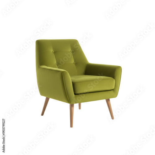 armchair, furniture, lime, green, modern, velvet, tufted, studio, white, isolated, product, commercial, sleek, stylish, interior, design, seating, architectural, luxury, upholster, textile, fabric, vibrant, saturated, high key, minimalist, wood, tapered, leg, comfort, residential, living, room, home, object, decor, view, photorealistic, professional, clean, sophisticated, contemporary, light, bright, aesthetic