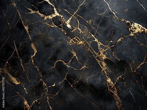 A high-resolution, realistic texture of black marble with golden veins, suitable for use as an elegant background or wallpaper in interior design projects.