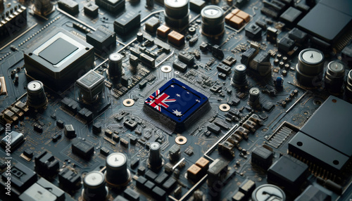 australia, flag, circuit board, microchip, technology, electronic, innovation, detailed, intricate, leadership, high technology, cutting edge, semiconductor, computer hardware, digital, engineering, manufacturing, research, development, microelectronics, electronics industry