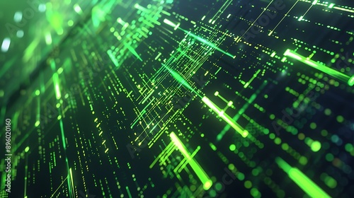 A high-tech design with neon green and black lines, reminiscent of a digital matrix