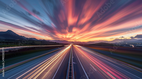 A highway at sunset with long exposure motion blur