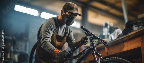 business, people, frame, man, paint, work, metal, bicycle, person, mask, industry, bike, men at work, job, gear, tool, hispanic, latin, service, equipment, occupation, industrial, process, painter, workplace, workshop, compressor, gun, spray, renovation, concentration, coating, sprayed, technician, renovate, handyman, workspace, view, copy space, concentrated, protective, refurbishment, applying, copy space, small business, real people, repair shop
