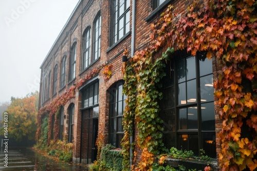 historic, building, covered, ivy, creating, dramatic, timeless, appearance