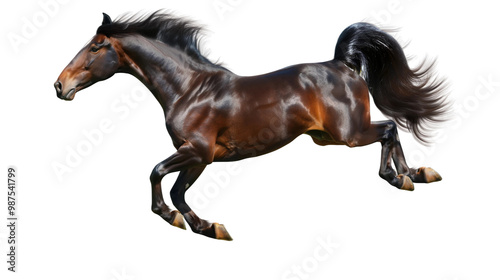 A horse with a long mane and tail is running isolated on white or transparent background, png clipart, design element. Easy to place object on any other background.