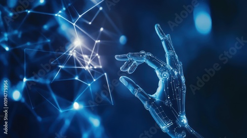 A human hand, with its delicate skin and flexible fingers, contrasts with a fantasy robot hand, made of sleek metal and intricate gears, capable of immense strength and precise, mechanical movements.