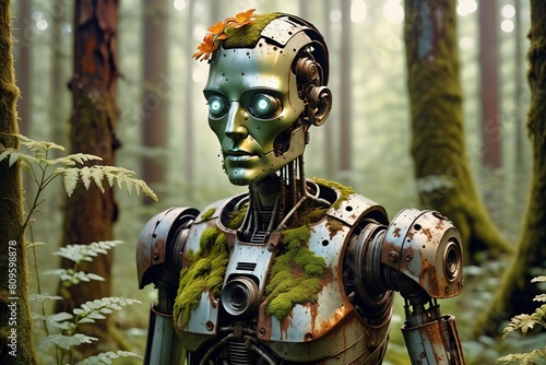 A humanoid robot forgotten in the forest
