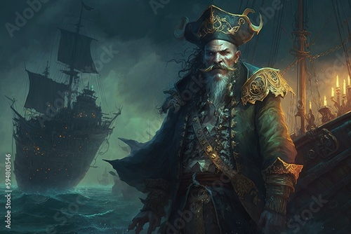 a illustration of a man in a pirate costume Generative AI