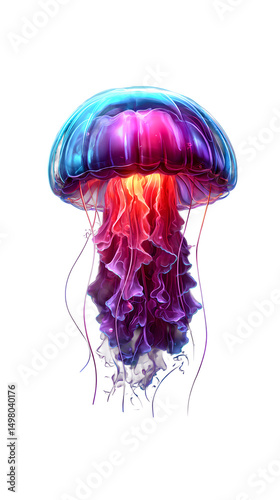 A jellyfish glowing in neon light isolated to transparent background