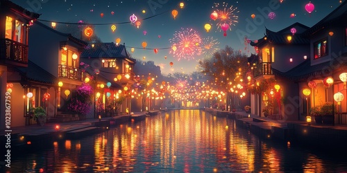 A joyful celebration of Diwali, India's Festival of Lights, with colorful lanterns and sparklers adorning homes and streets.