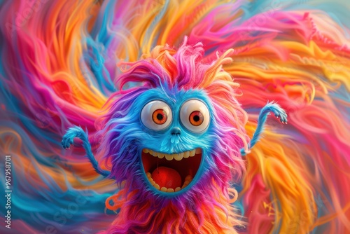 swirl, chaotic, whimsical, enchanting, cheerful, playful, energy, fantasy, animation, creative, imagination, happiness, fun, character, expression, abstract, surreal, motion, light, high-coloured, colourful, joyful, furry, animated, magical, dreamlike, illustration, dynamic, life events