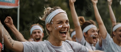 celebration, happiness, joy, outdoors, group, oneness, teamwork, victory, excitement, friends, youthful, festive, cheerful, laughter, success, energy, fun, camaraderie, triumph, exuberant, sport, spirit, enthusiasm, summer, bright, togetherness, motivation, winning, expression, festivity, playfulness, community, positive, gathering, lively, active, sunshine, exhilaration, connection, bonding, dynamic, vibrant