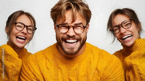 laughter, joy, happiness, friendship, smile, fun, togetherness, expression, emotion, warmth, sweater, goggles, people, celebration, camaraderie, portrait, cheerful, vibrant, playful, oneness, excitement, love, personality, positivity, interaction, connection, candid, enthusiasm, fashion, casual attire, enjoyment, community, blithe, humor, diversity, energy, creativity, engagement, social, dynamic, lifestyle, communication