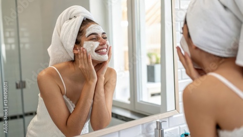 woman, bathroom, facial, skincare, smile, mirror, happy, morning, wellness, clean, beauty, routine, hygiene, relaxation, care, serenity, fresh, refreshing, natural, comfortable, bright, health, grooming, indulgence, joy, lifestyle, spa, treatment, youthful, pure, elegant, texture, moisture, confidence, serene, womanhood, refresh, vibrant, skin, radiance, cleansing