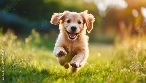 puppy, dog, running, playful, grass, happy, animal, cute, nature, joy, pet, adventure, sunlight, vibrant, freedom, energy, smile, action, young, furry, landscape, whimsical, beautiful, scene, soft, companionship, lively, friendly, happiness, sweet, movement, bright, fun, innocence, warm, carefree, freshness, playtime, excitement, natural, joyful, exploration