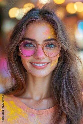 holi, festival, celebration, colours, woman, smiling, joyous, vibrant, face, paint, cultural, event, spring, happiness, laughter, bright, fun, community, tradition, india, gathering, attire, colourful, playfulness, warmth, joy, background, cheerful, beauty, ethnic, young, adult, carefree, art, expression, significance, festivity, spirited, togetherness, radiant, energy, social, merriment, atmosphere, look, party, flower