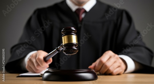 A judge wearing black robes banging their gavel. Justice. Lawsuit. Legal. Stern gownsman