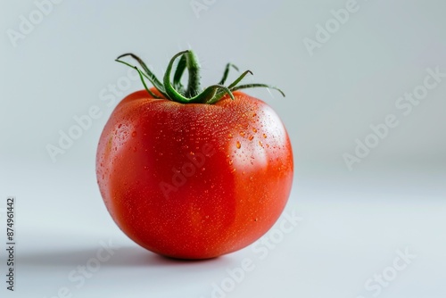 A juicy red tomato stands out against a clean white background, showcasing its vibrant color and texture. Perfect for food bloggers and chefs.