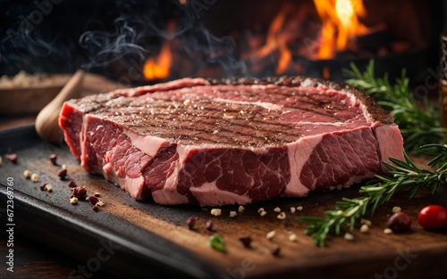 steak, chopping board, fire, grilling, juicy, cooking, bar-b-q, food, delicious, sizzling, seared, charred, meal, dinner, meat, beef, succulent, mouth-watering, smoky, cooked