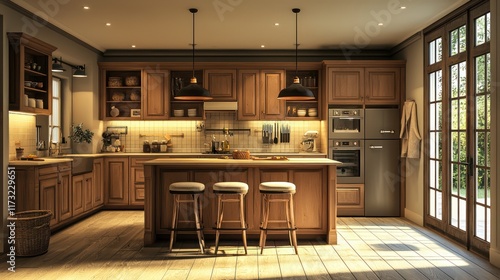 kitchen, designed, practical, dish, towel, upholster, bar, stool, comfort, interior, home, room, design, house, furniture, architecture, luxury, contemporary, cabinet, apartment, wood, table, new, sink, nobody, indoor, floor, window, oven, light, style, stove, cabinet