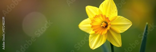 A large daffodil with a bright yellow and orange gradient on its petals, petals, flowers, garden