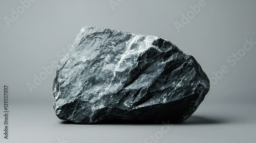 A large grey rock sits on a grey background all by itself. isolated on a solid gray background. Illustrations