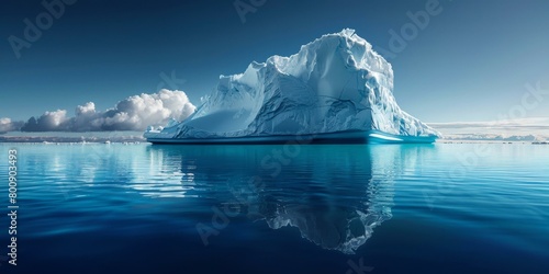 iceberg, ocean, antarctica, arctic, climate change, global warming, ice, water, cold, nature, environment, polar, glacier, floe, ice cube, glacé, solid, hard, crystal, clear, blue, white, semitransparent, glistening, sparkling, shimmering, reflecting, refracting, light, sunlight, sky, cloud, wave, surface, tension, buoyancy, equilibrium, stability