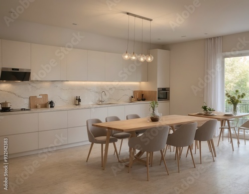 table, kitchen, chair, large, modern, wooden, dining, plant, room, clean, white, furniture, design, luxury, interior, home, house, floor, apartment, style, chair, decor, contemporary, wood, architecture, indoor, domestic, sink, oven, comfortable