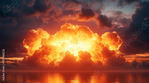 large, orange, cloud, sky, body, water, sun, intense, dramatic, setting, dominating, background, red, light, bright, sunset, danger, nature, sunlight, power, dark, sunrise, energy, apocalypse, explosion, scenic, yellow, heaven, glowing, beautiful, dawn, armageddon, evening, mystical, ray, hot, summer, colours, landscape, mysterious, space, view, abstract, fire, night, detonation, cataclysm, scene