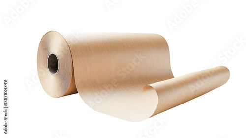 A large roll of kraft paper unfurling gently showcasing its texture and light brown color a symbol of packaging and natural materials