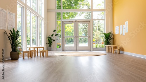 large, room, yellow, wall, white, door, several, middle, potted, plant, including, interior, left, home, side, also, chair, modern, design, apartment, floor, window, living, wooden, house, luxury, contemporary, space, light, empty, flat, architecture, bright, style, background, furniture, loft, cosy, comfortable, residential, clean, decoration, wood, lifestyle, table, concept, indoor, green, nobody