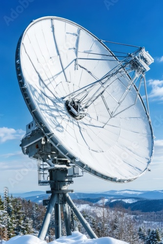 antennae, satellite, dish, sky, blue, snowy, hilltop, mountain, winter, technology, communication, signal, transmission, reception, network, wireless, space, science, research, exploration, datum, information, telecom, infrastructure, landscape, nature, outdoors, horizon, cloud, environment, weather, cold, glacé, white, grey, metal, structure, engineering, futuristic, modern, power, advanced, telescope, astronomy, observation, universe, remote, isolated, huge