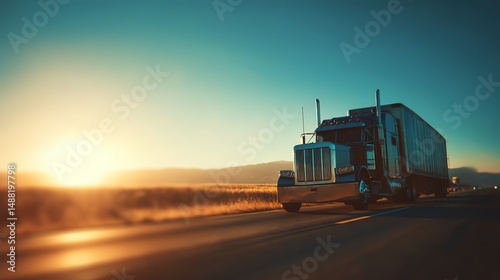 truck, highway, sunrise, transportation, logistic, wheel, shipment, trailer, shipping, freight, diesel, delivery, speed, commerce, vehicle, dawn, journey, engine, commercial, horizon, semi, distribution, automobile, transport, trucking, sunlight, driver, cargo, motion, route, express, distance, industry, business, outdoors, sky, road, travel, countryside, landscape, hauler