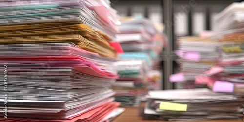 office, paperwork, file, stack, disorganization, document, paper, folder, clutter, workspace, administration, business, organisation, chaos, productivity, office supply, management, workload, stationery, information, task, detail, blurred background, office space