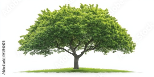 A large tree with green leaves stands in a grassy field. The tree is the main focus of the image, and it is a symbol of growth and life. The grass around the tree adds a sense of tranquility